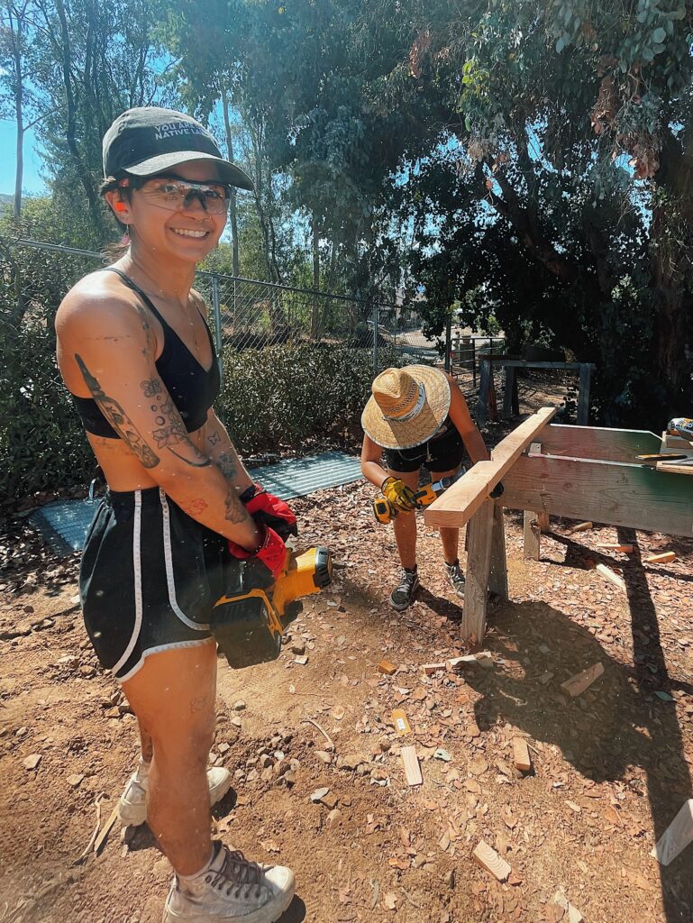 The sink was upcycled for free, and simply connects to a garden hose for easy outdoor use. It flows into a greywater bucket below, with the option to later re-route water directly to the garden.